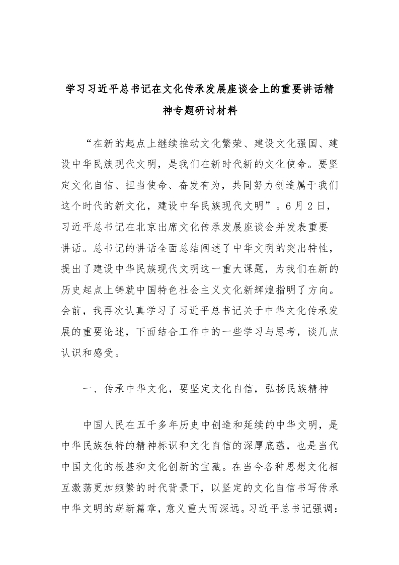 / 学习习近平总书记在文化传承发展座谈会上的重要讲话精神专题研讨材料