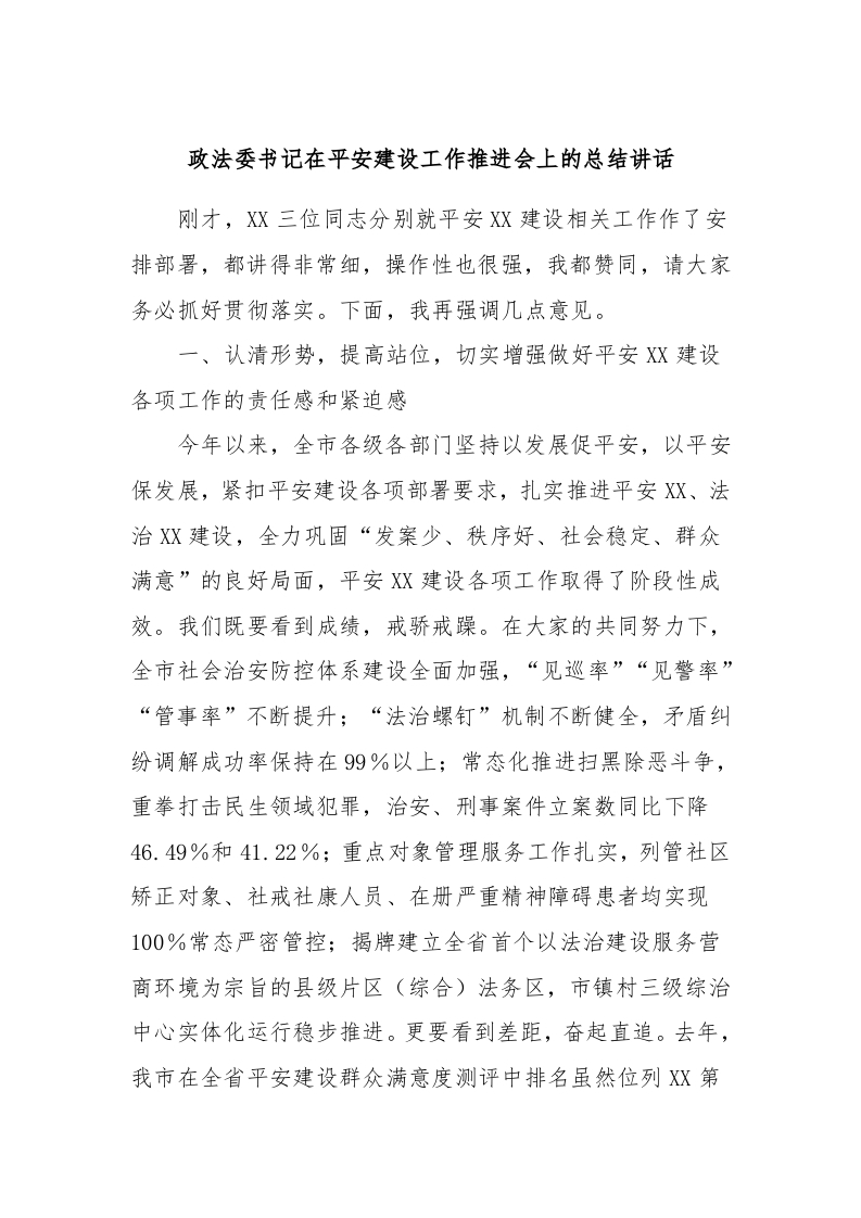 / 政法委书记在平安建设工作推进会上的总结讲话