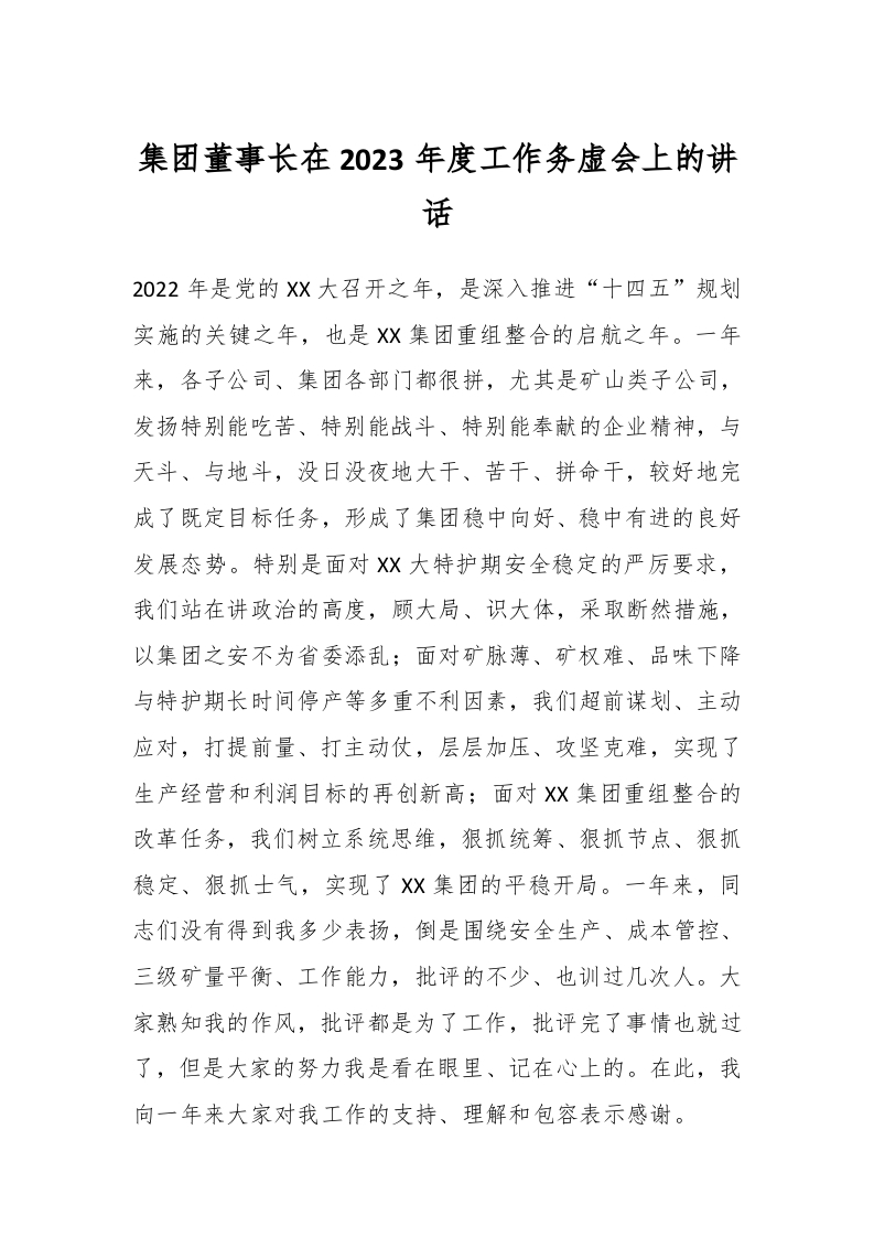 / 集团董事长在2023年度工作务虚会上的讲话