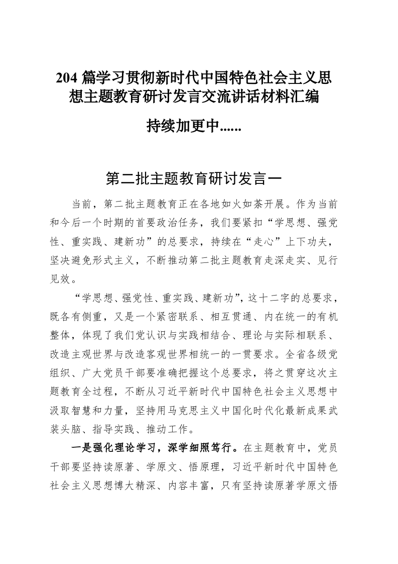 / (204篇)学习贯彻新时代中国特色社会主义思想主题教育研讨发言心得体会交流讲话范文材料汇编(第二批)