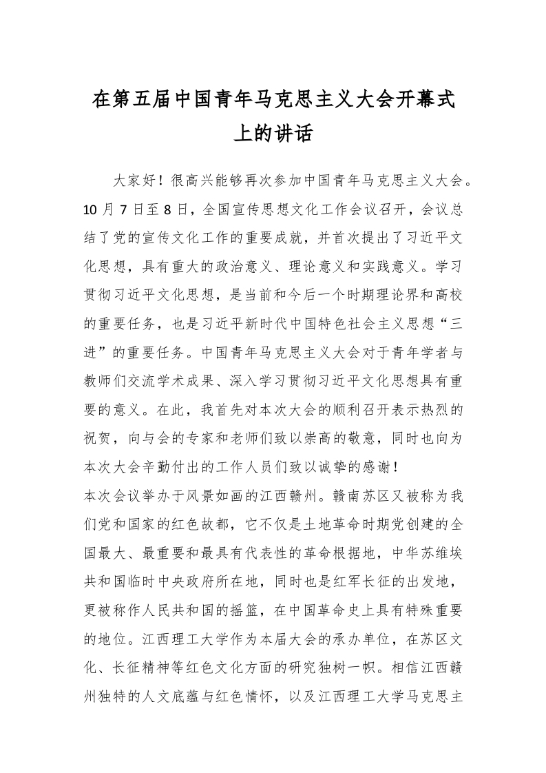 / 在第五届中国青年马克思主义大会开幕式上的讲话
