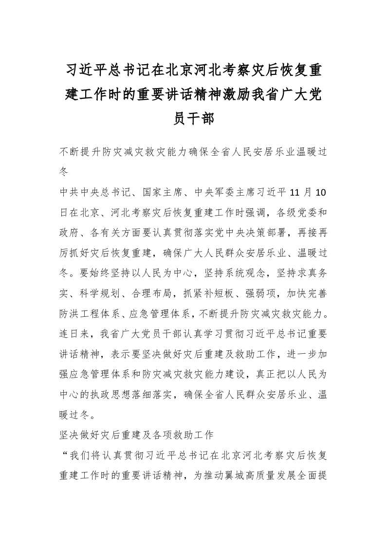 / 习近平总书记在北京河北考察灾后恢复重建工作时的重要讲话精神激励我省广大党员干部