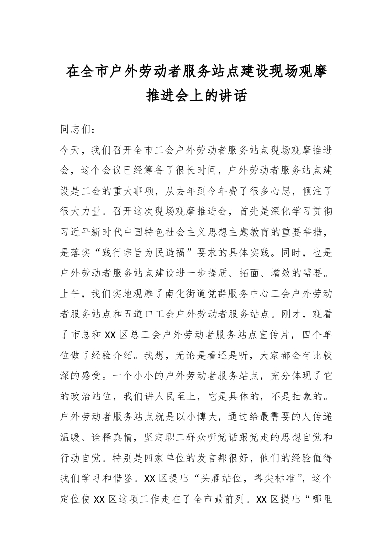 / 在全市户外劳动者服务站点建设现场观摩推进会上的讲话