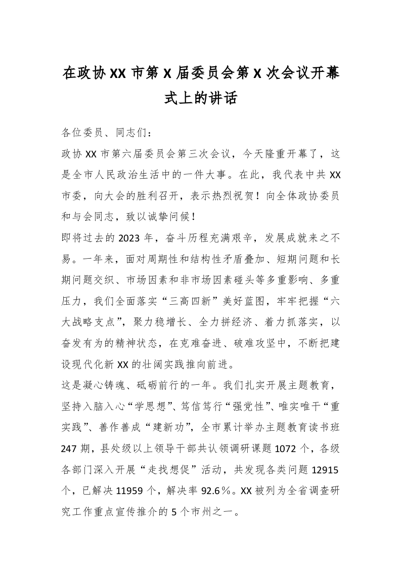 / 在政协XX市第X届委员会第X次会议开幕式上的讲话