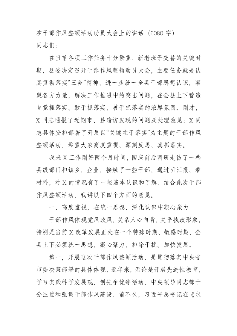 / 在干部作风整顿活动动员大会上的讲话