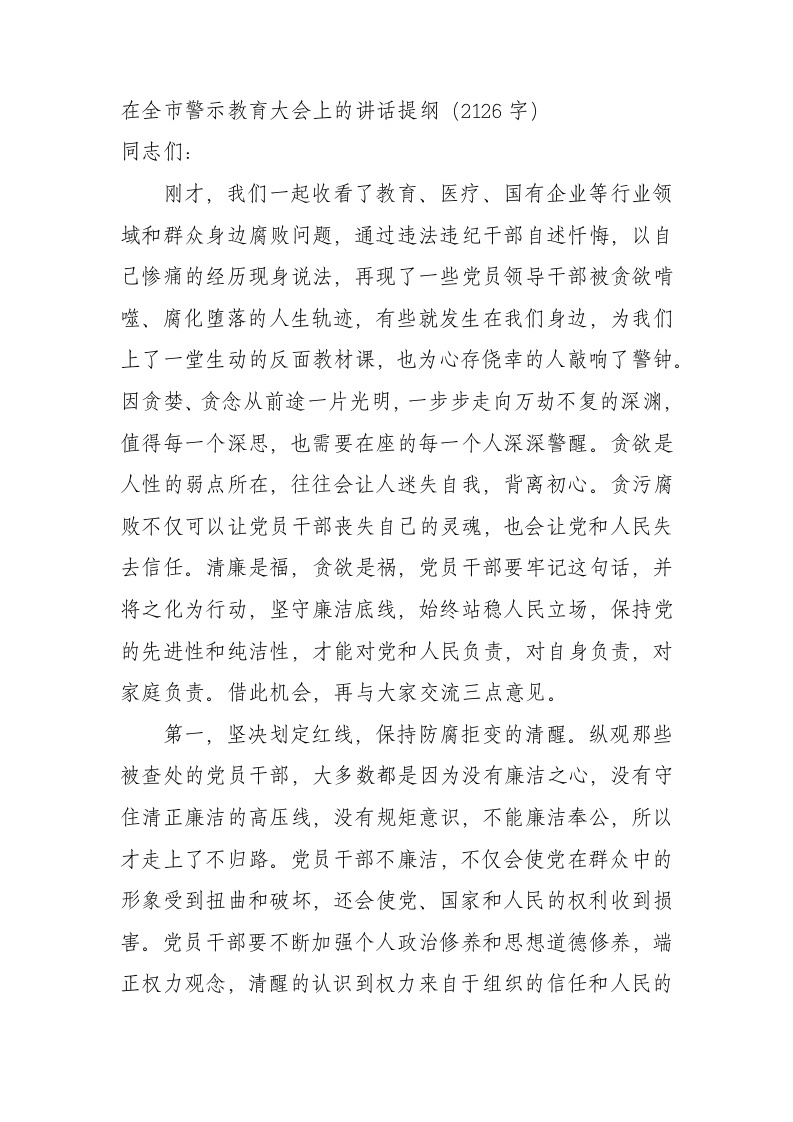 / 在全市警示教育大会上的讲话提纲
