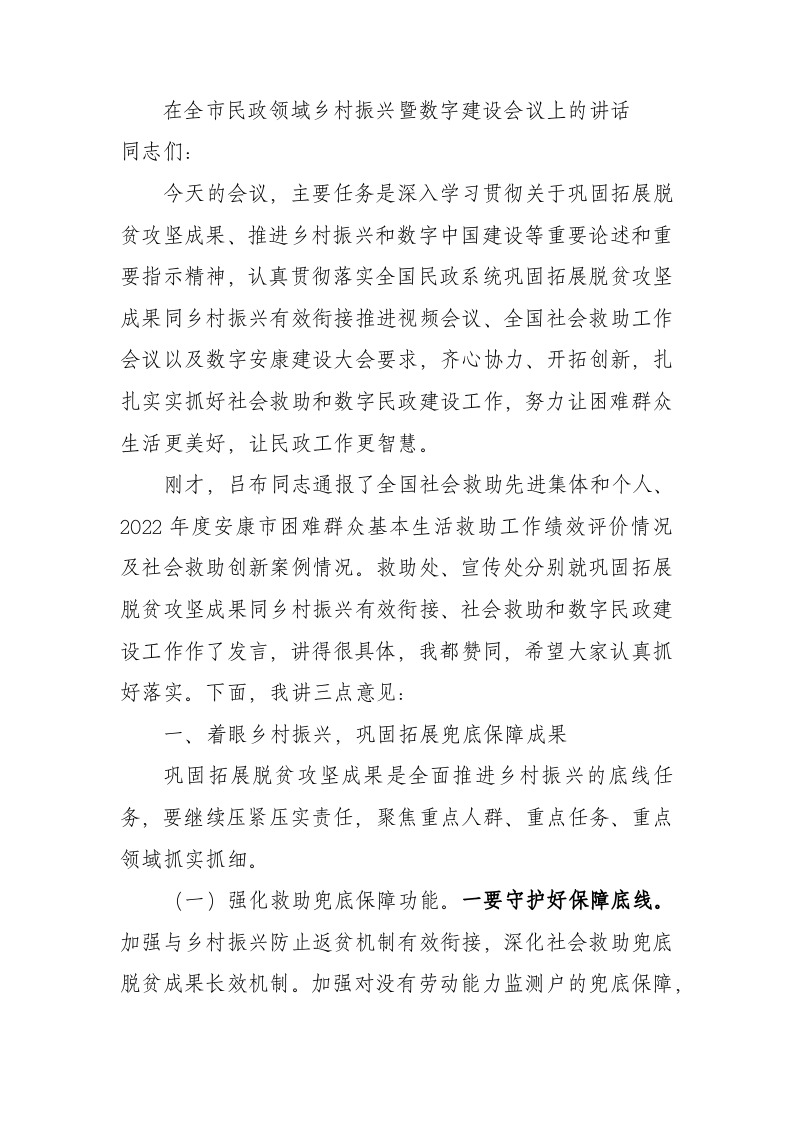 / 在全市民政领域乡村振兴暨数字建设会议上的讲话