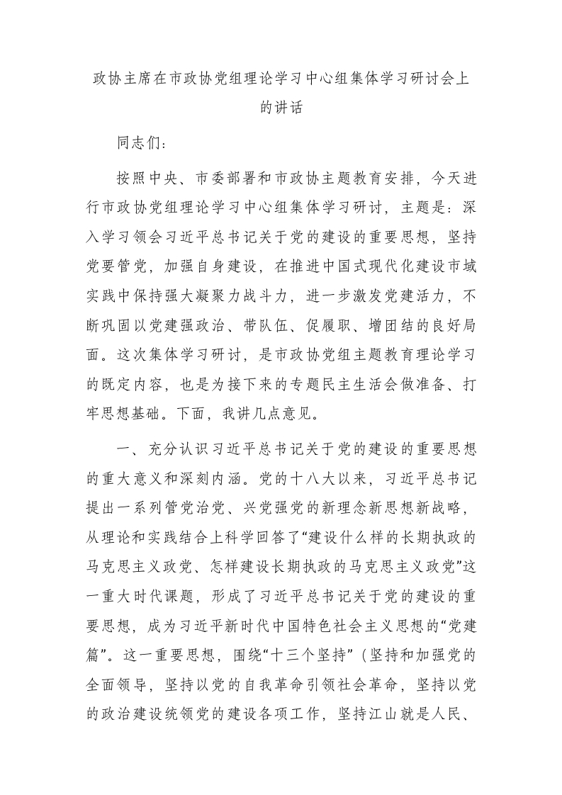 / 政协主席在中心组党的建设专题集体学习研讨会上的讲话