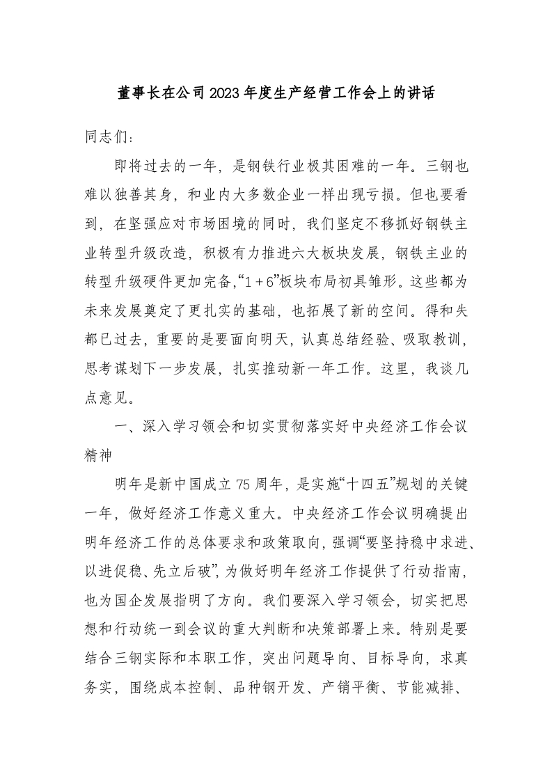 / 董事长在公司2023年度生产经营工作会上的讲话