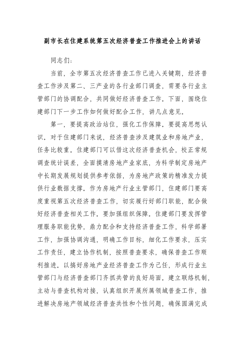 / 副市长在住建系统第五次经济普查工作推进会上的讲话