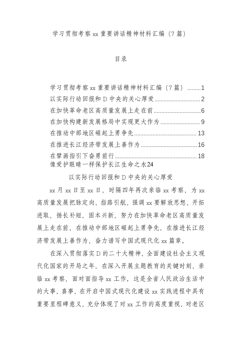/ 学习贯彻考察xx重要讲话精神材料汇编(7篇)
