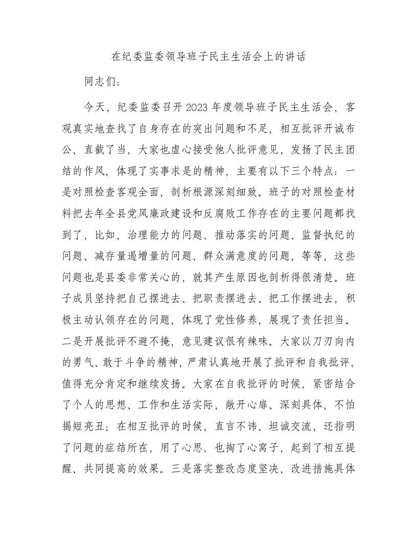 / 在纪委监委领导班子民主生活会上的讲话(1)