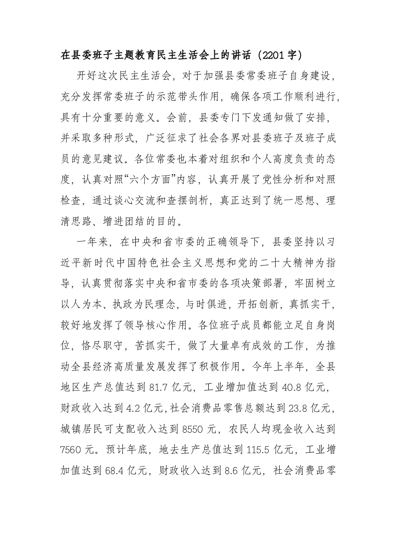 / 在县委班子主题教育民主生活会上的讲话(1)