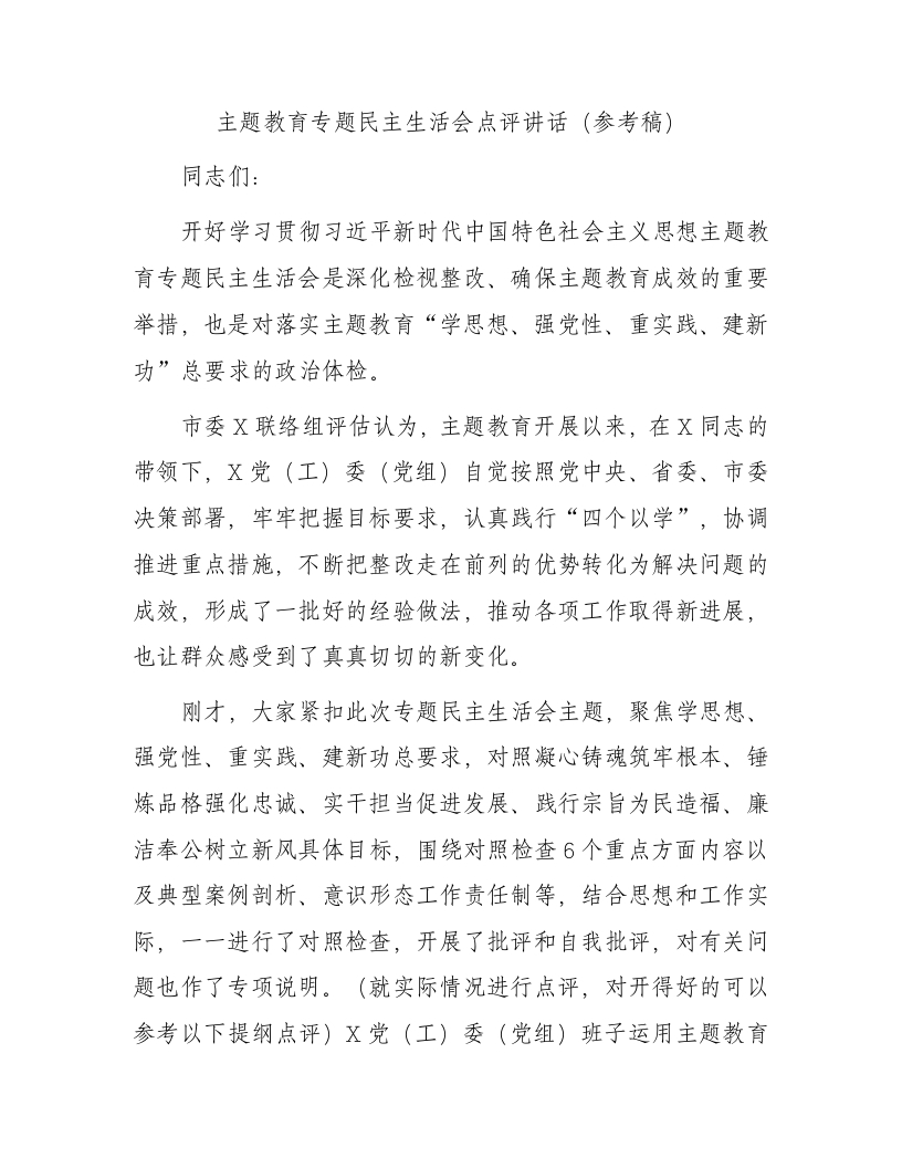 / 主题教育专题民主生活会点评讲话(参考稿)(1)