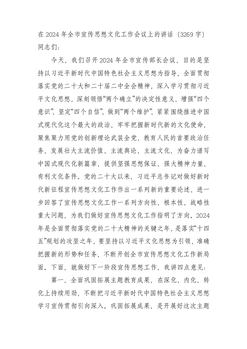 / 在2024年全市宣传思想文化工作会议上的讲话