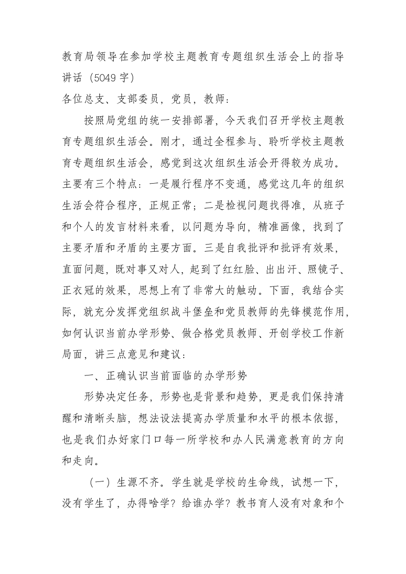 / (会中)教育局领导在参加学校主题教育专题组织生活会上的指导讲话