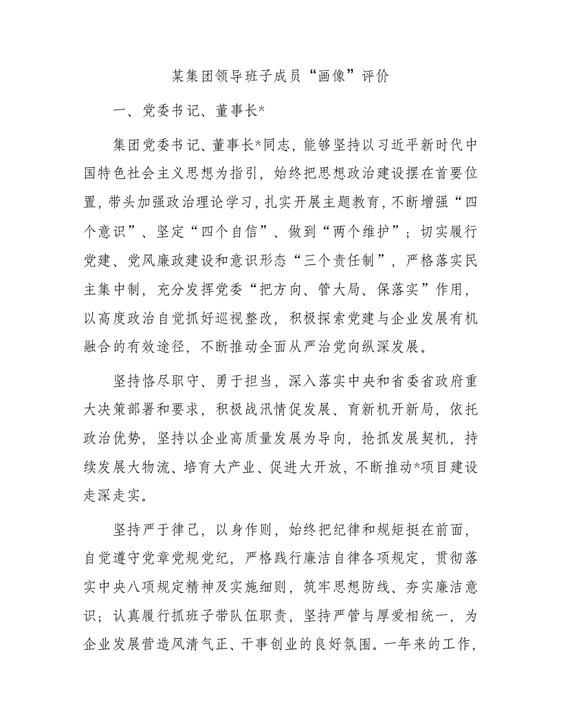 / 某集团领导班子成员“画像”评价