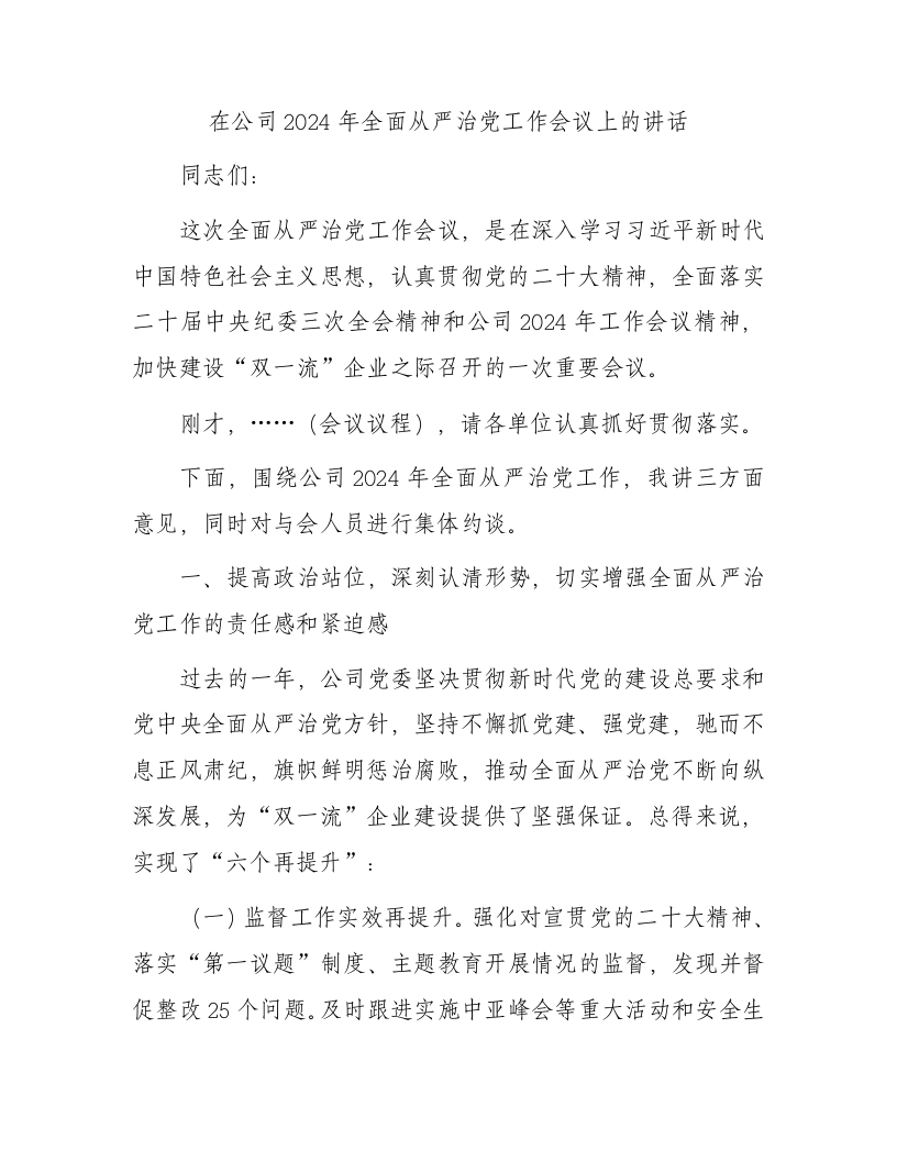 / 在公司2024年全面从严治党工作会议上的讲话