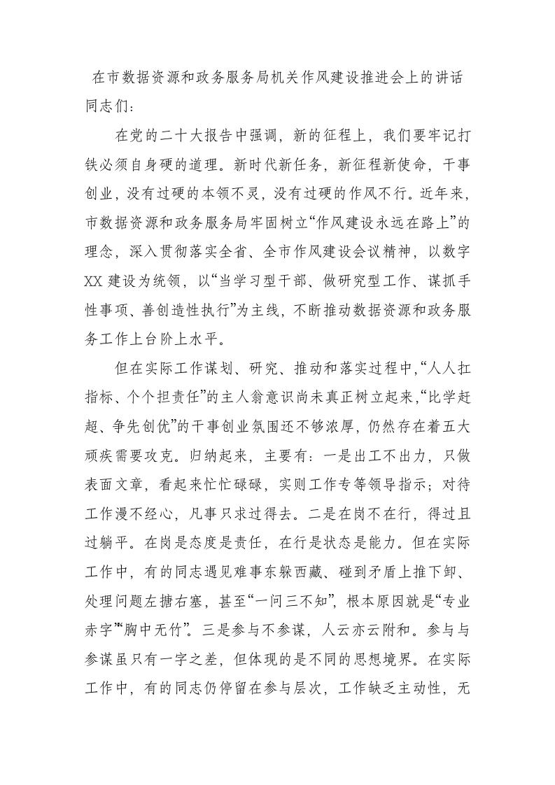 / 在市数据资源和政务服务局机关作风建设推进会上的讲话