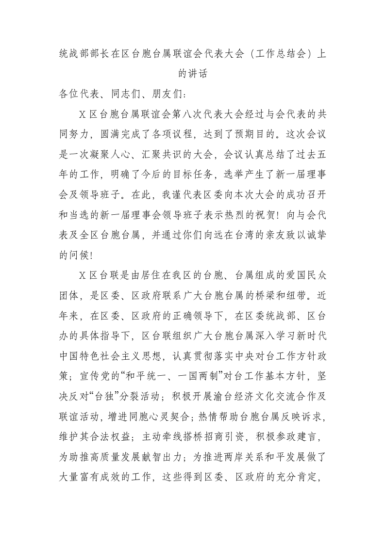 / 统战部部长在区台胞台属联谊会代表大会(工作总结会)上的讲话