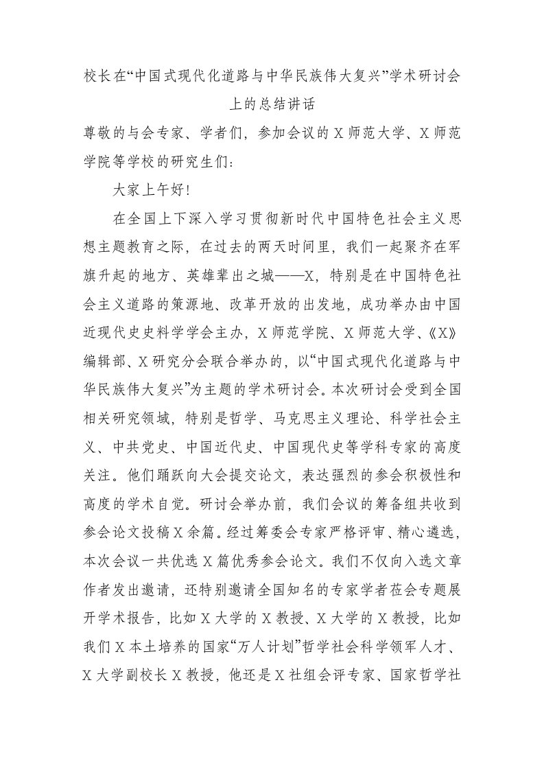 / 校长在“中国式现代化道路与中华民族伟大复兴”学术研讨会上的总结讲话