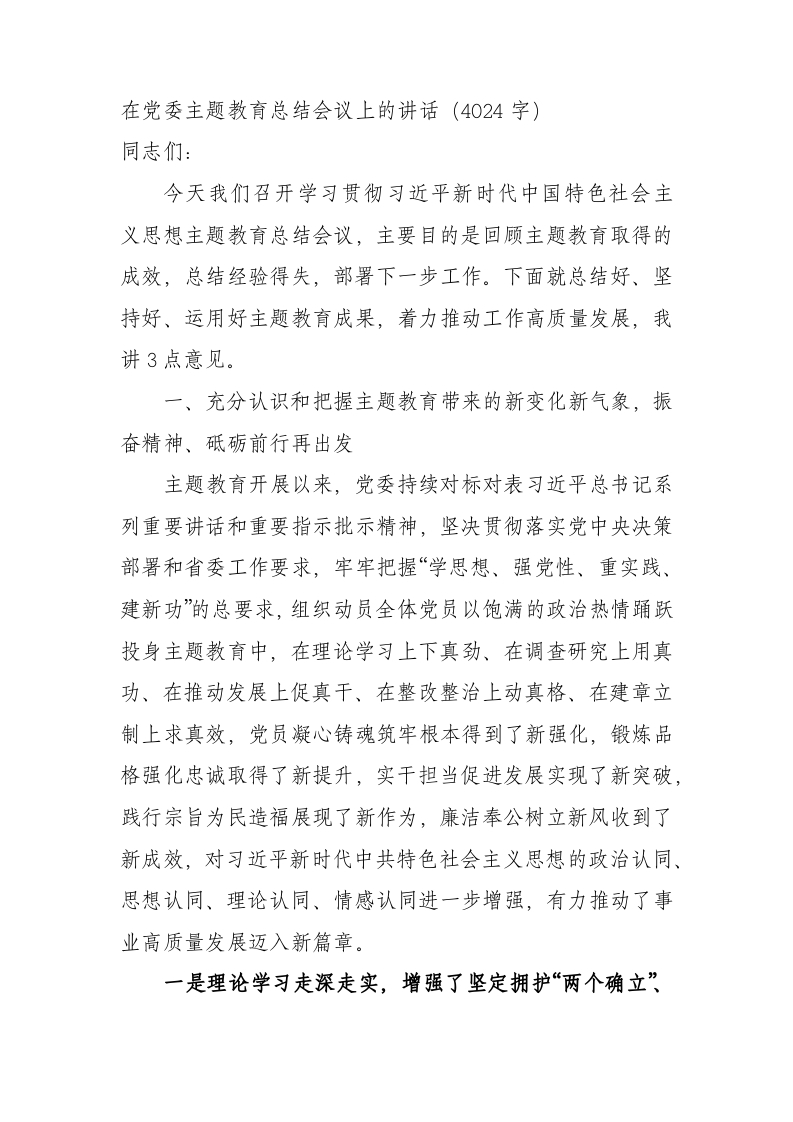 在党委(党组)2023年主题教育专题民主生活会上的总结表态讲话