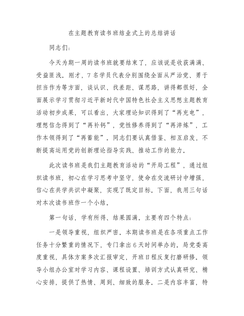 / 在主题教育读书班结业式上的总结讲话