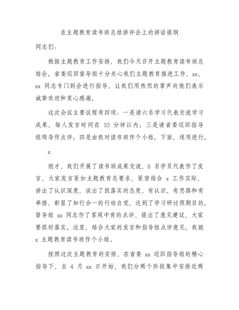 在主题教育读书班总结讲评会上的讲话提纲(1)