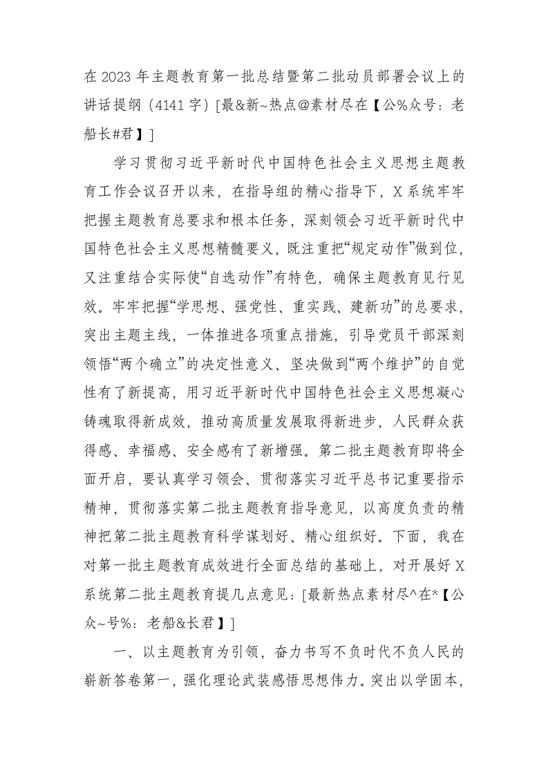 / 主题教育第一批总结暨第二批动员部署会议上的讲话提纲