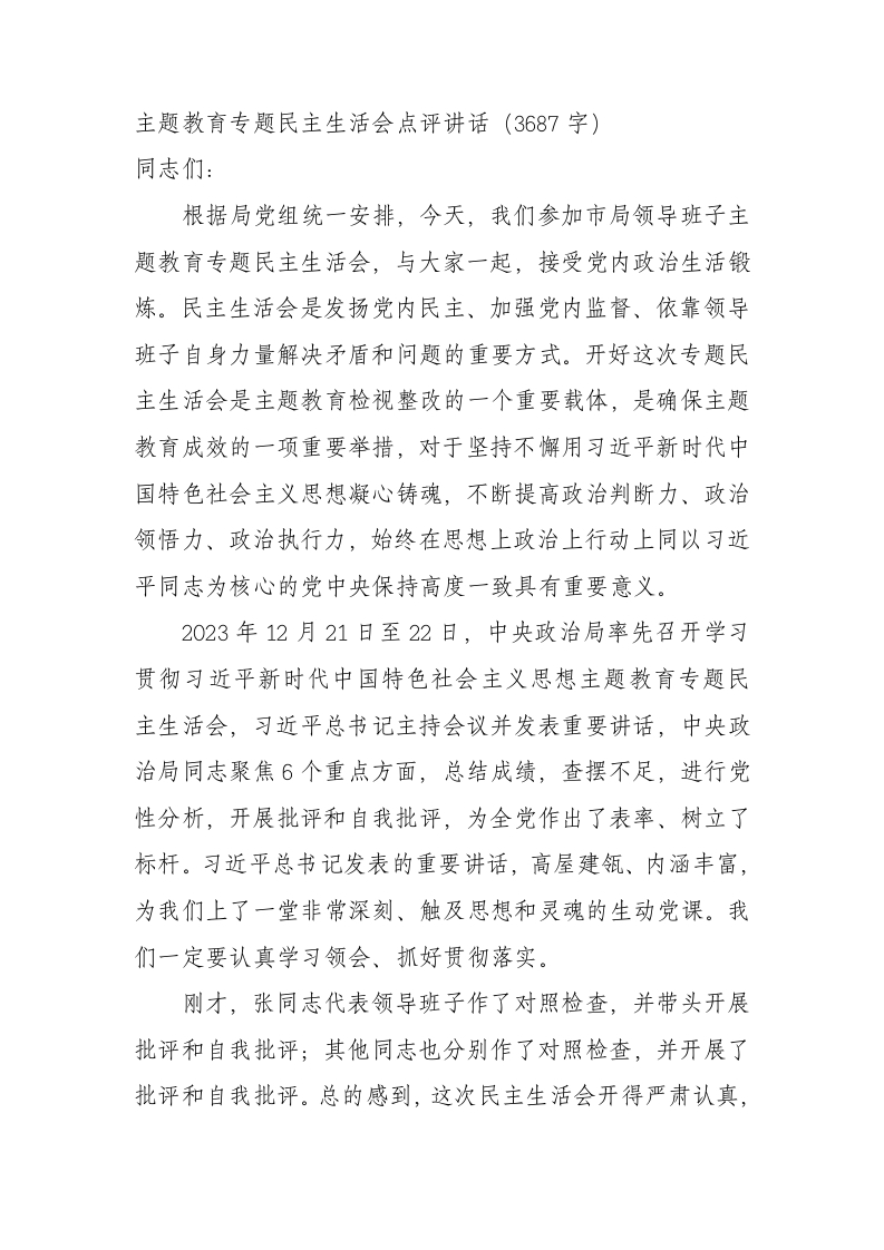 (会中)在局2023年主题教育专题民主生活会上的总结讲话1700字