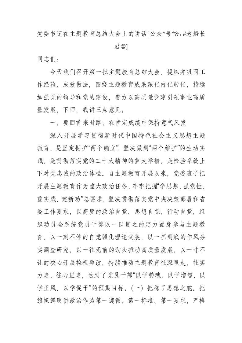 / 党委书记在主题教育总结大会上的讲话