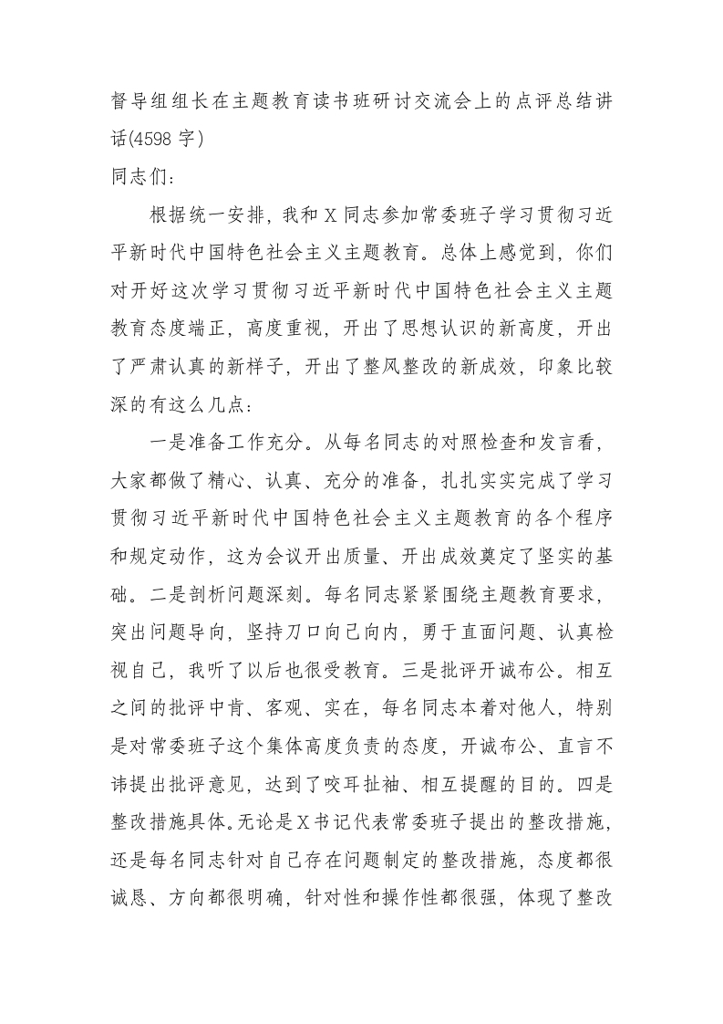 / 督导组组长在主题教育读书班研讨交流会上的点评总结讲话