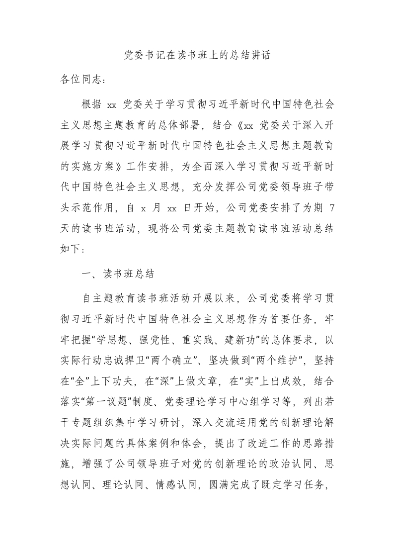 / 国企主题教育读书班上的总结讲话3800字(主题教育读书班总结及下步计划)