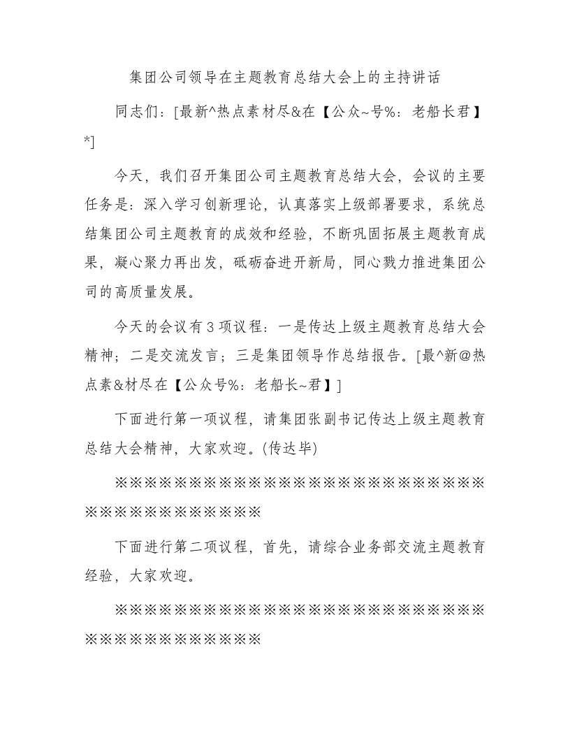 / 集团公司领导在主题教育总结大会上的主持讲话