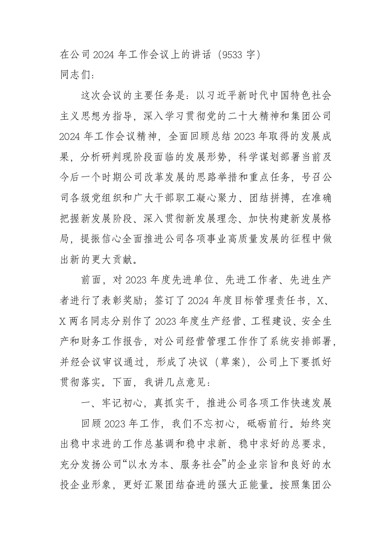 国企2024年工作会议上的讲话