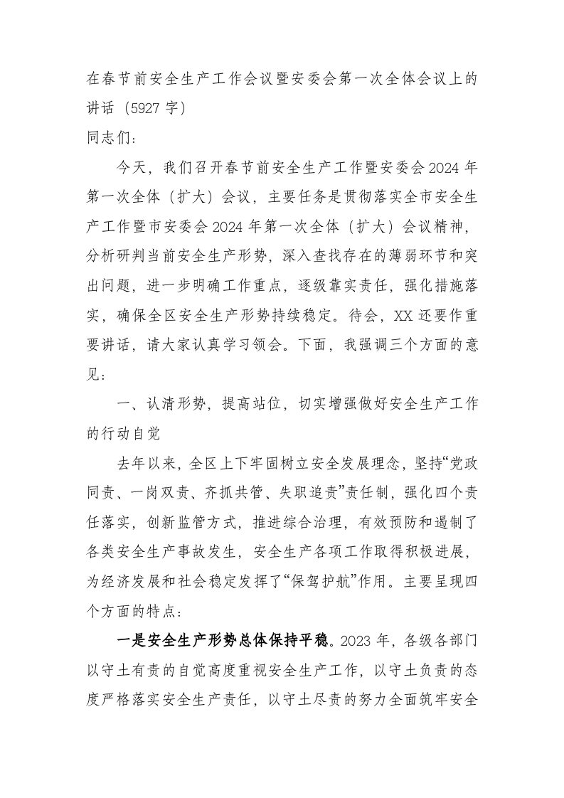 在春节前安全生产工作会议暨安委会第一次全体会议上的讲话
