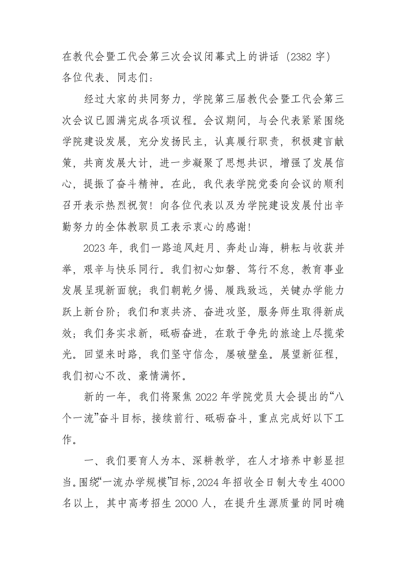 / 在教代会暨工代会第三次会议闭幕式上的讲话