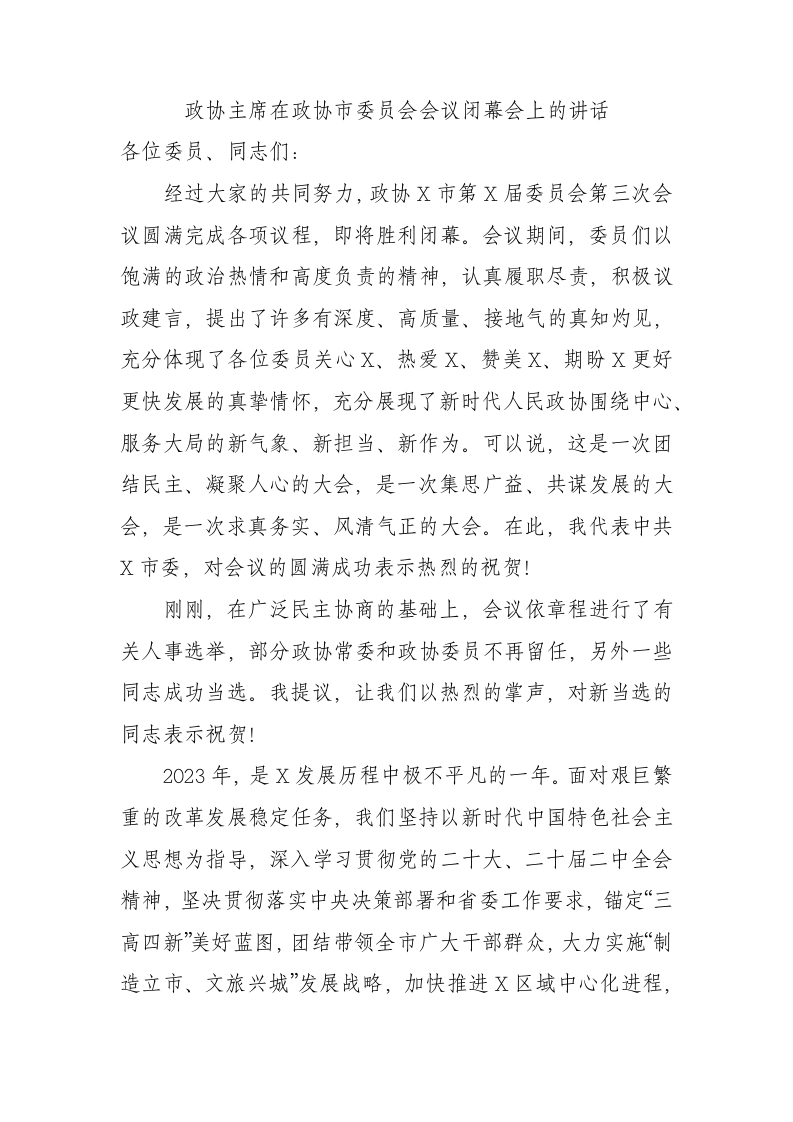 / 政协主席在政协市委员会会议闭幕会上的讲话