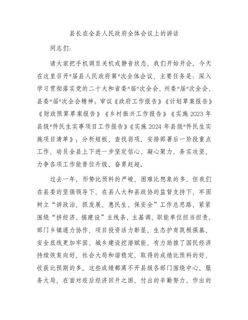 / 县长在全县人民政府全体会议上的讲话