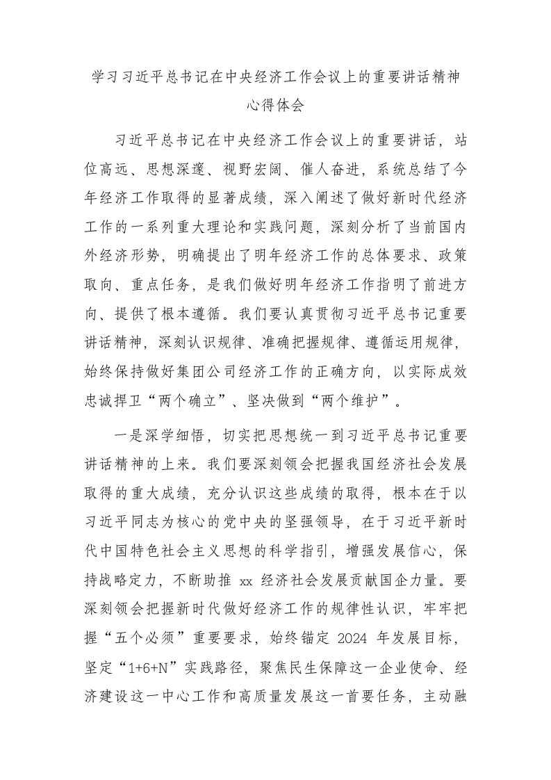 / 经济工作会议上的重要讲话精神心得体会发言