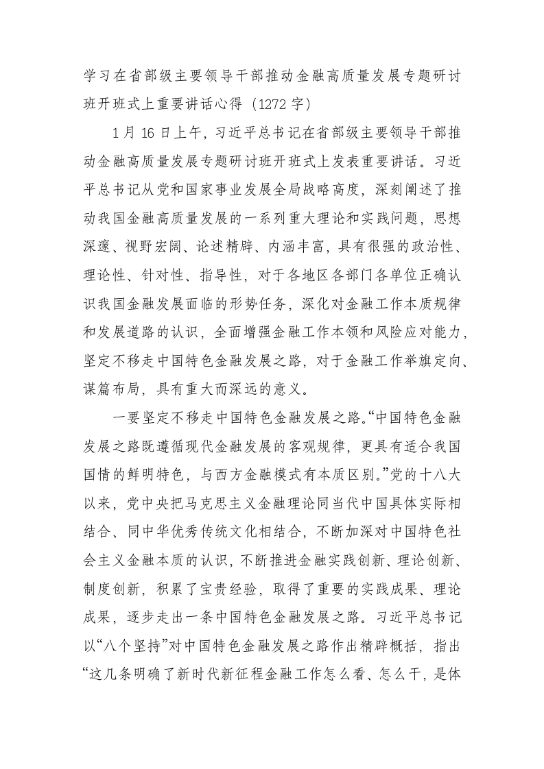 / 学习在省部级主要领导干部推动金融高质量发展专题研讨班开班式上重要讲话心得
