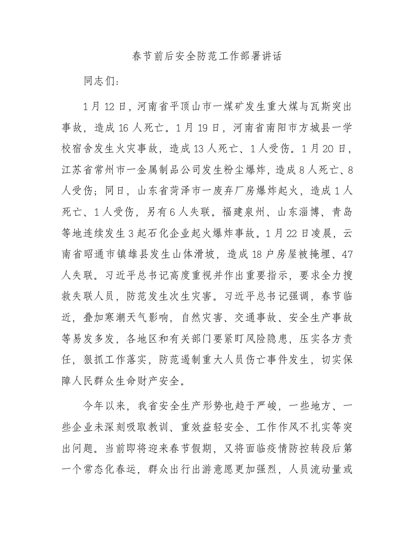 / 春节前后安全防范工作部署讲话