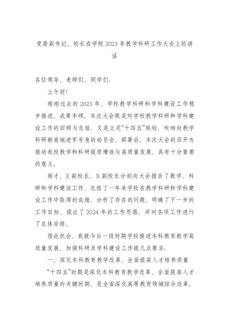 / 党委副书记、校长在学院2023年教学科研工作大会上的讲话