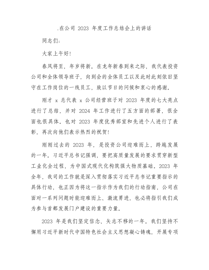/ 国企2023年度工作总结会上的讲话