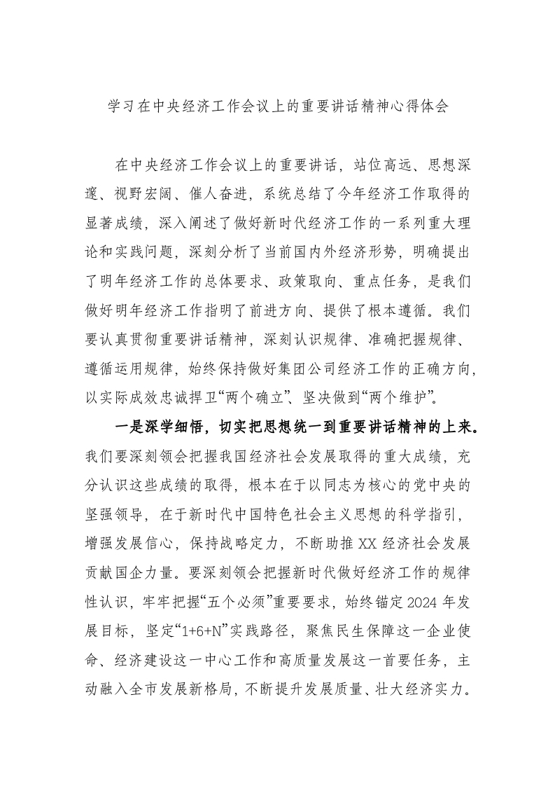 / 学习习近平总书记在中央经济工作会议上的重要讲话精神心得体会