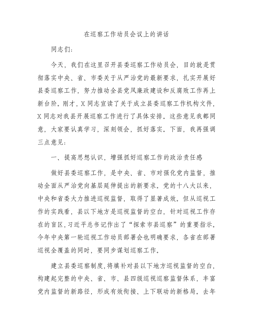 / 在巡察工作动员会议上的讲话