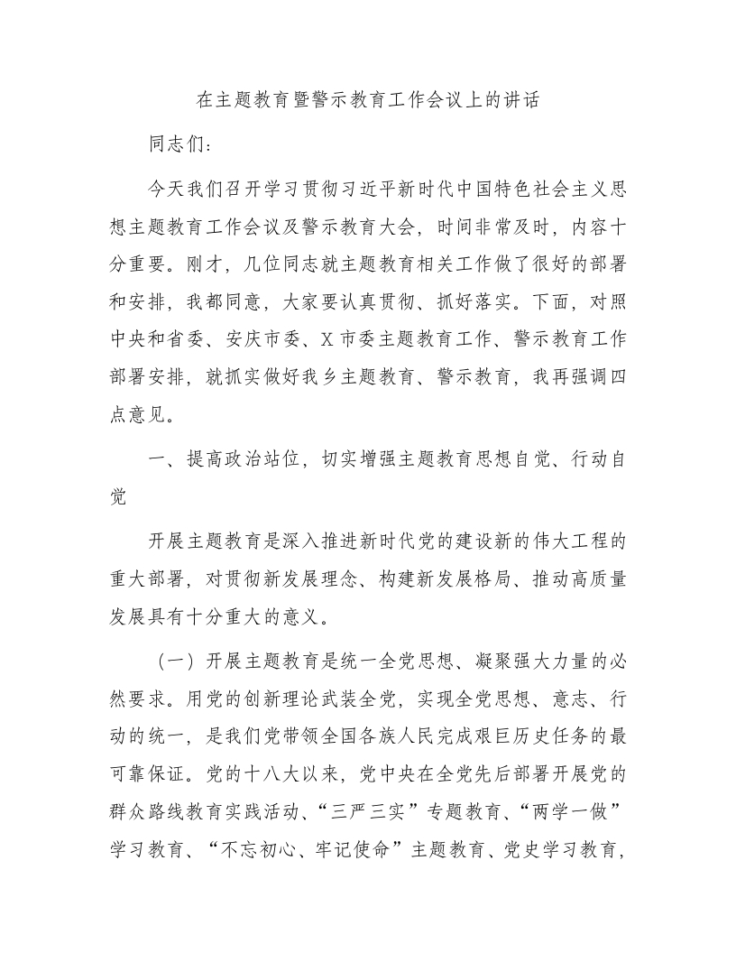 (会中)县委书记在县委办公室党支部主题教育专题组织生活会上的讲话