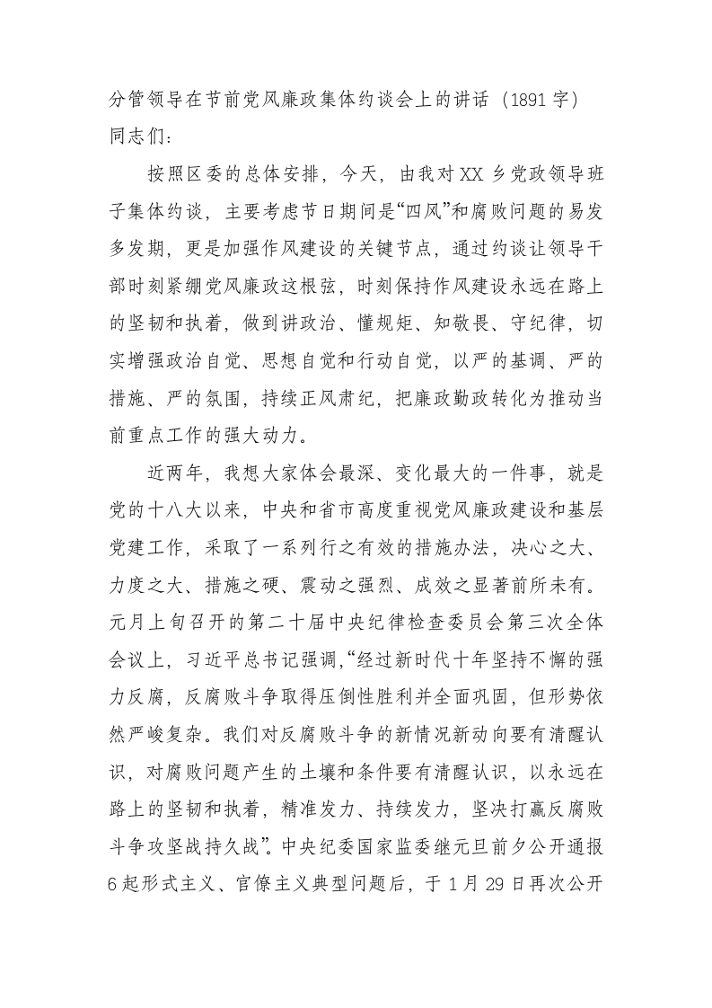 / 分管领导在春节前党风廉政集体约谈会上的讲话