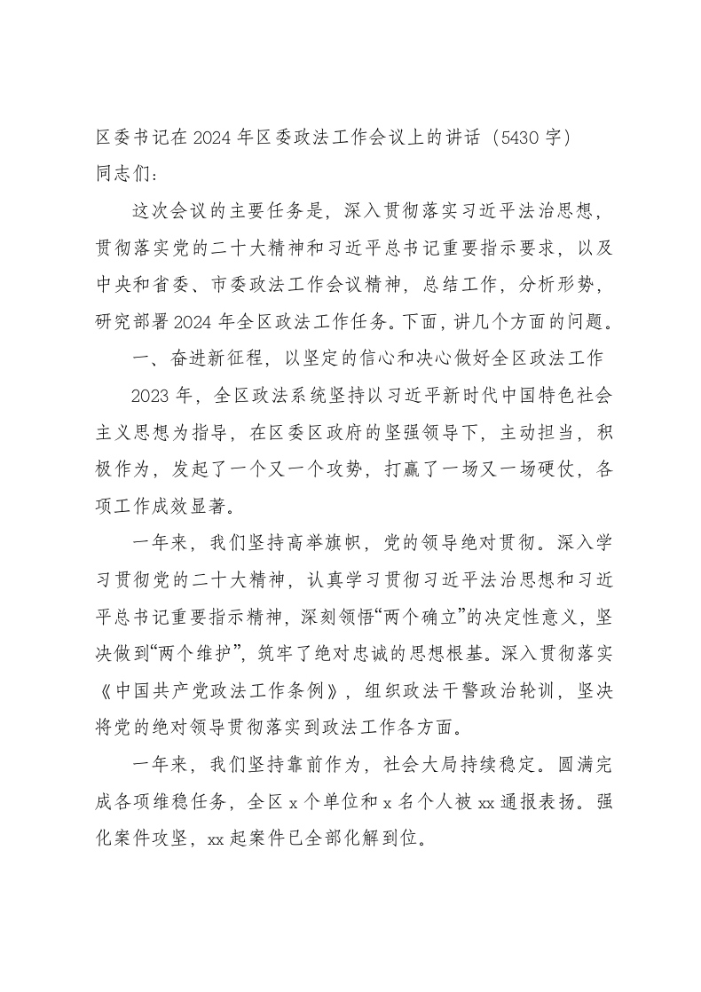/ 区委书记在2024年区委政法工作会议上的讲话