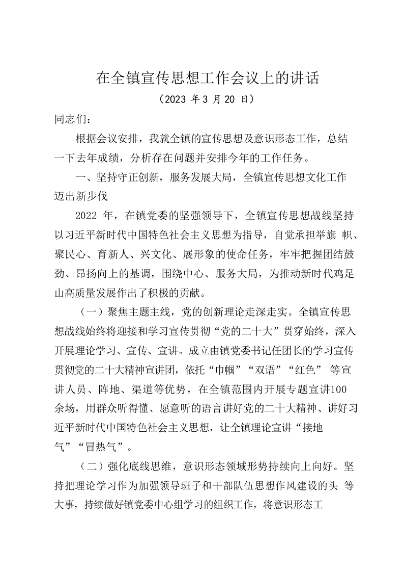 (2023.03.20)在全镇宣传思想工作会议上的讲话